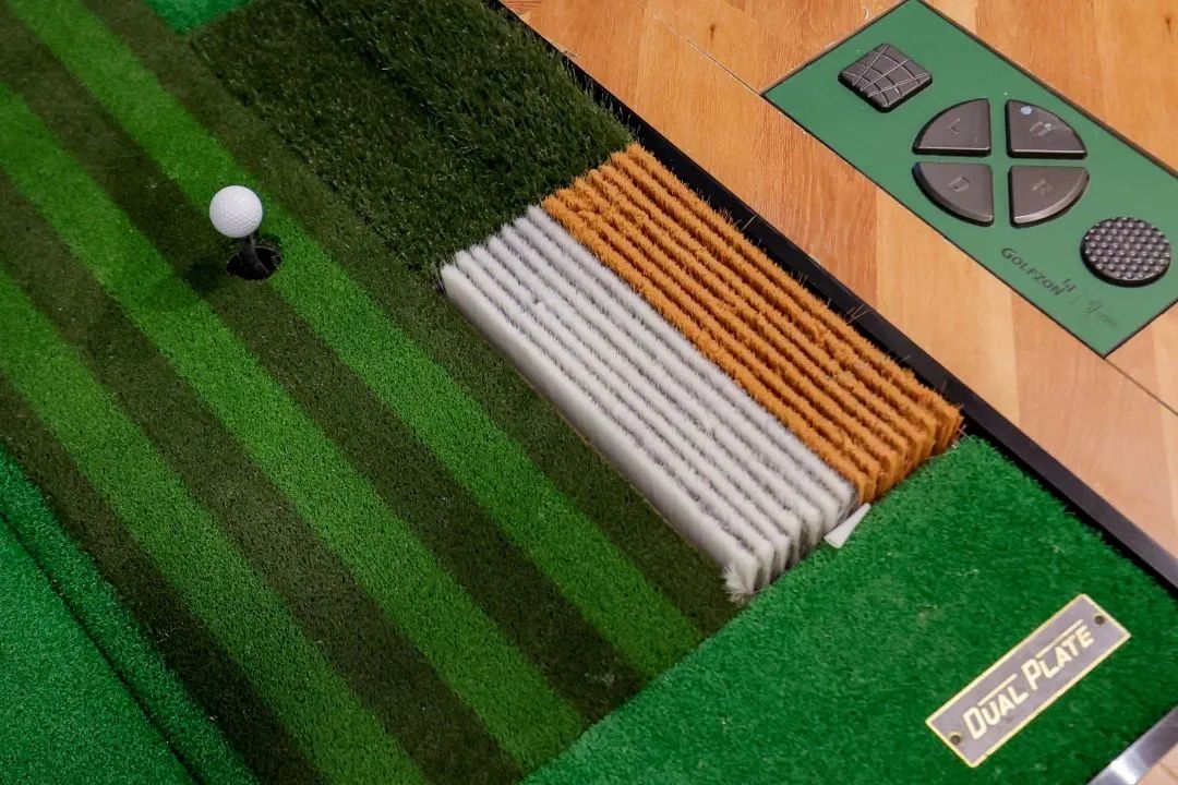 在练习场模式下,GOLFZON高尔夫模拟器与现实打感几乎完全一致的。在球场模式下,GOLFZON TWOVISION PLUS配备了全球首个可以实现14种坡度状态的双面动感平台,配合两种长度的长草和两种硬度的沙坑打击垫,它们可以最大程度还原室外高尔夫球场真实的击球状态。所以在打感方面,你完全可以把GOLFZON球馆视作室外高尔夫球场的“平替”。